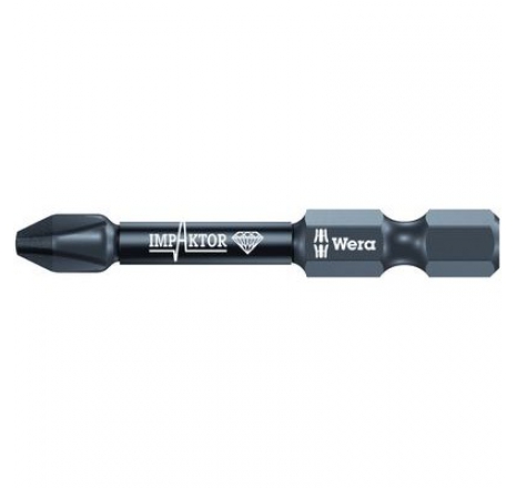 Diamond-coated, for Phillips screws, with optimised shape for above-average service life even under extreme conditions; ideal for use with impact power drivers. The rough diamond coating provides increased frictional resistance to prevent the bit from slipping out of the screw. 1/4" hexagon drive C 6.3.