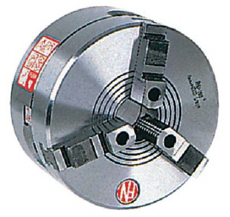 Steel body, with jaw retainer (system Reishauer) DIN 6350, cylindrical centring receptacle Design Centrally clamping precision chuck with steel body. All gliding parts made of selected, high-alloy steels, hardened for use, ground highly precisely on special machines. All parts are replaceable. The jaw guides are wear-resistant hardened in the special process. Application For lathe work with high demands on precision of concentricity and repeatability with simultaneously high clamping strength. Normal accessories 1 set of hard, reversible clamping jaws, internally ground in the chuck. 1 set of screws and the corresponding fastening elements acc. to the standard. 1 chuck key, rubber inserts Designs: 125 mm: without jaw retainer Appropriate accessories: 250240 Clamping jaws 250250 Base jaws 250260 Top jaws