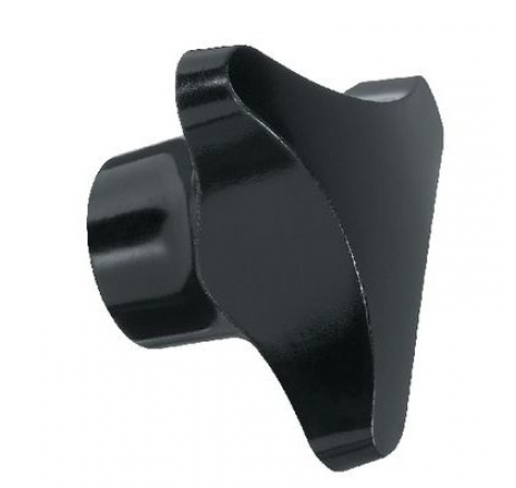 PF-31 thermoset plastic, gloss black, with zinc-plated threaded sleeve.