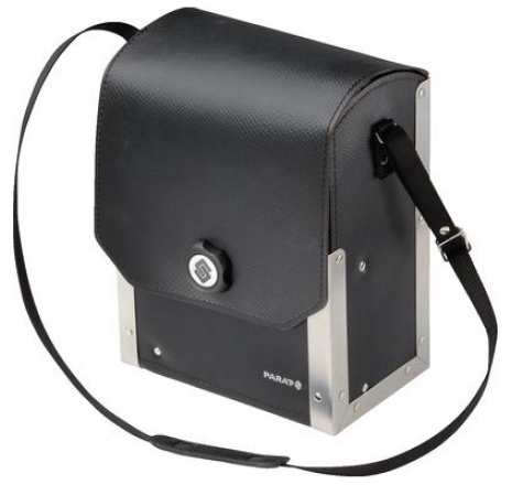 Parat Top-Line, extra-thick cowhide, black, bag body aluminium-reinforced. Internal reinforcement made from Con-Pearl/polyethylene. Front, rear and centre wall with a total of 17 insertion compartments, transparent clamp compartment in lid, bottom studs, adjustable carrying strap, with magnetic closure PARALOCK, without tools.